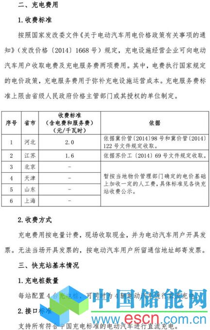 中國儲能網(wǎng)訊:日前,國家電網(wǎng)發(fā)布了高速公路快充網(wǎng)絡(luò)服務(wù)指南。其中,國家電網(wǎng)將為在高速公路上使用電動車的用戶提供電話預(yù)約、人工服務(wù)的充電方式;另外,充電的收費方式及收費標(biāo)準(zhǔn)和京滬高速快充站站點分布等信息也一同發(fā)布,詳情請見以下國家電網(wǎng)官方網(wǎng)站網(wǎng)頁截圖:(注:目前京滬高速充電樁沒有正式投入運營,而是試運行階段,需要充電的話需要提前打電話通知工作人員,需要工作人員協(xié)助使用,大家出行前一定注意和提前了解。)