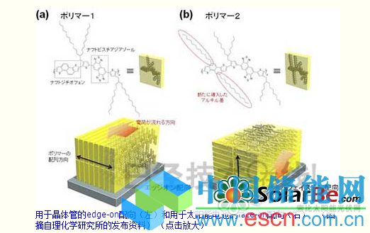 我們并沒有盲目開發(fā)材料。我們在以前用半導(dǎo)體高分子的幾種材料進行研究的過程中,發(fā)現(xiàn)了“如果這樣做的話,配向會變成這樣”的現(xiàn)象,從而最終找出了半導(dǎo)體高分子的配向規(guī)律。這個規(guī)律并不是通過數(shù)值計算導(dǎo)出的,而是憑經(jīng)驗找到的。為了做成face-on而引入烷基也是基于經(jīng)驗。