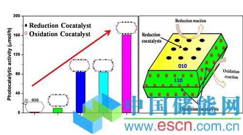 中國儲能網(wǎng)訊:2月26日,中科院大連化物所李燦院士領(lǐng)導(dǎo)的太陽能研究部繼發(fā)現(xiàn)BiVO4等半導(dǎo)體的不同晶面間電荷分離效應(yīng)后 ( Nature Commun., 4, 1432, 2013 ,Rengui Li, Fuxiang Zhang, Hongxian Han and Can Li et al),相關(guān)研究工作又取得新的進(jìn)展。利用半導(dǎo)體光催化劑的不同晶面之間電荷分離效應(yīng),設(shè)計(jì)組裝氧化還原雙助催化劑于光催化劑的不同暴露晶面上,可將光催化劑活性提高兩個(gè)數(shù)量級以上,進(jìn)一步確認(rèn)了晶面間光生電荷分離的效應(yīng)和雙助催化劑的協(xié)同促進(jìn)作用,為理性設(shè)計(jì)合成高效光催化劑提供了策略。相關(guān)結(jié)果近期發(fā)表在能源與環(huán)境科學(xué)領(lǐng)域期刊《能源與環(huán)境科學(xué)》(Energy & Environmental Science)上(Energy Environ. Sci., 2014, DOI:C3EE43304H , Rengui Li, Hongxian Han, Fuxiang Zhang , Donge Wang and Can Li)。
