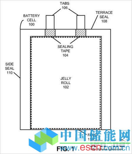jelly roll 裝在一個(gè)柔軟的包裝袋中,兩個(gè)導(dǎo)電選項(xiàng)卡則貫穿整個(gè)包裝袋成為電池的終端。至于電池的厚度如何控制,如何生產(chǎn)出各種不同厚度的電池,蘋果表示將不同層面的物質(zhì)混合在一起之前,可以根據(jù)需要將不同層面的物質(zhì)取出即可控制電池的厚度。