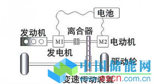 比亞迪F3DM沒(méi)有動(dòng)力分配機(jī)構(gòu),只有簡(jiǎn)單的幾個(gè)離合器,兩個(gè)電機(jī)和1.0升的發(fā)動(dòng)機(jī)在一個(gè)軸上。這個(gè)軸通過(guò)減速器直接驅(qū)動(dòng)車輪。