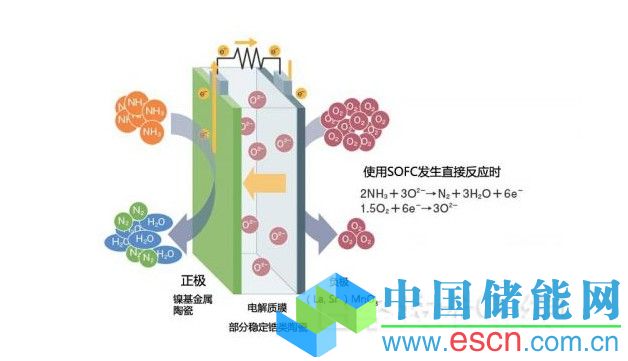 以NH3為燃料的SOFC方面,正極候選材料是鎳(Ni)基金屬陶瓷,電解質(zhì)膜候選材料是部分穩(wěn)定鋯(Zr)類陶瓷,負(fù)極候選材料是添加了鑭鍶類材料的錳氧化物((La, Sr)MnO3)。據(jù)推算,采用上述材料制成的SOFC的發(fā)電效率將超過現(xiàn)有SOFC的45%。如果要進(jìn)行間接反應(yīng)的話,還要開發(fā)分解NH3時(shí)使用的催化劑材料。目前正在考慮的候選材料有鐵(Fe)、鈷(Co)、鎳及釕(Ru)等。
