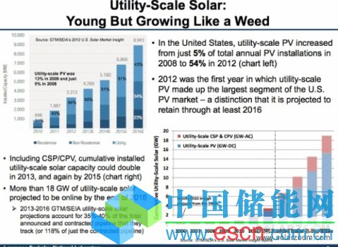 在美國,公共電力光伏項目在年度光伏總安裝量中所占的比例由2008年的5%增長至2012年的54%。事實上,去年是公共電力光伏鮮明首次獲得美國光伏市場匯中的最大份額——預(yù)計至少在2016年投資稅收抵免(ITC)額度由30%降至10%前始終保持該比例。