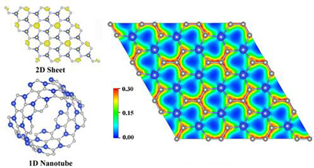 中科院福建物質結構研究所結構化學國家重點實驗室吳立明研究員課題組在國家自然科學基金重點和面上項目支持下,通過全局粒子群的優(yōu)化搜索算法與第一性原理方法相結合的手段,成功地預測了能隙為1.09 eV的二維平面SiC2硅碳石墨烯 (g-SiC2)材料。該材料由sp2雜化的C原子和Si原子構成,結合能為0.41eV/atom,處于勢能面上的全局最低點,比已知的同分異構體pt-SiC2(由4配位sp3雜化的Si原子形成)從能量上來得更加穩(wěn)定,因此其單獨存在的可能性更大。此外理論預測其熔點位于3000到3500K之間,其衍生納米管的能隙(~1.09eV)不隨手性、尺寸等變化,這些表明該材料具有很好的應用潛力,相關研究成果發(fā)表在國際雜志《納米快報》(Nano letters)上,該項工作為二維碳基納米材料的結構改性設計、能帶調控提供了重要的理論參考。