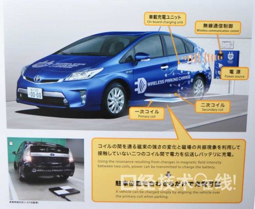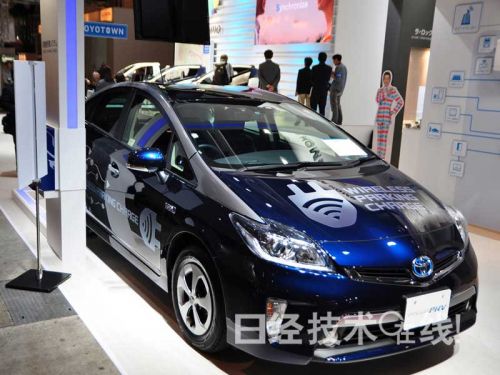 豐田在會(huì)場(chǎng)展示的是以該公司的插電式混合動(dòng)力車(PHEV)“普銳斯PHV”為原型、嵌入磁共振方式無(wú)線充電系統(tǒng)的車輛。該車配備的無(wú)線充電系統(tǒng)的輸出功率為2kW。關(guān)于使用的頻帶,豐田表示,“打算把85kHz作為第一選擇”。盡管該公司以前也公開(kāi)過(guò)無(wú)線充電試制車輛,但此次試制車配備的系統(tǒng)縮小了受電線圈及外圍部件的尺寸。解說(shuō)員介紹說(shuō),“重新進(jìn)行了熱設(shè)計(jì),修改了原來(lái)過(guò)于冗余的散熱措施”。