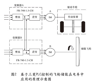 飛輪儲(chǔ)能電源系統(tǒng)除了在電動(dòng)汽車中的應(yīng)用以外,還可以用于電車、載重汽車、城鐵、鐵路交通等許多領(lǐng)域。圖2是基于三菱PLC控制的飛輪儲(chǔ)能在電車中應(yīng)用的原理示意圖。通過三菱O系列PLC、CC-Link現(xiàn)場(chǎng)總線和F700變頻器的控制系統(tǒng),依據(jù)一定的控制算法,把電機(jī)運(yùn)行時(shí)的電能轉(zhuǎn)化為動(dòng)能儲(chǔ)存在飛輪的機(jī)械系統(tǒng)中,電機(jī)處于發(fā)電機(jī)狀態(tài)時(shí),再釋放這部分能量。