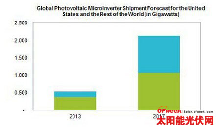該報(bào)告稱,2017年全球光伏微逆變器出貨量將從2013年的500MW左右增長至2.1GW。
