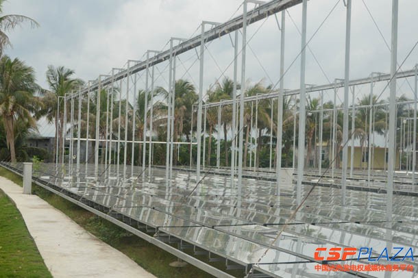 中國儲能網(wǎng)訊:8月14日,海南三亞南山電廠,CSPPLAZA記者隨同相關(guān)人員參觀了華能海南1.5MWth菲涅爾光熱發(fā)電示范項(xiàng)目。當(dāng)日三亞受臺風(fēng)氣候影響,天氣陰沉,無陽光輻照,項(xiàng)目未能實(shí)現(xiàn)運(yùn)行。