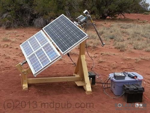 中國(guó)儲(chǔ)能網(wǎng)訊:美國(guó)亞利桑那州一名工程師Mike Davis在自家后院架設(shè)獨(dú)立式電力系統(tǒng),采用一組自制的小型太陽(yáng)能陣列,為小型電池組持續(xù)充電。不過(guò),他每隔幾個(gè)小時(shí)就得手動(dòng)將這些太陽(yáng)能板移至可暴露于太陽(yáng)底下的最佳位置。后來(lái)他在一次車(chē)庫(kù)大拍賣(mài)時(shí)花了15美元買(mǎi)了一組傳統(tǒng)電視天線旋轉(zhuǎn)器,終于讓這個(gè)手動(dòng)調(diào)整太陽(yáng)能板位置的過(guò)程實(shí)現(xiàn)自動(dòng)化。