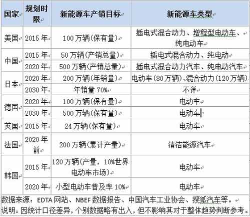 新能源汽車產(chǎn)業(yè)主要國家規(guī)劃目標(biāo)