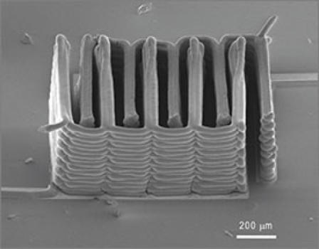 為了讓電池在足夠細小的同時又有足夠的能量,科學家們意識到需要將更多能量添加到微電池中,而實現(xiàn)這一目的就需要創(chuàng)造出許多緊密交錯的超薄電極。于是科學家將目光投向了 3D 打印機,精確打印一層層的微型電池電極,每一個電極的寬度均小于一根頭發(fā)。
