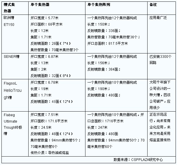 ET150是目前應(yīng)用最廣泛的槽式集熱陣列設(shè)計(jì),在ET150之前,Luz公司曾設(shè)計(jì)了Luz一代、二代、三代和四代集熱器,第四代集熱器因該公司的破產(chǎn)而未得到應(yīng)用,此后出現(xiàn)了ET100型集熱器設(shè)計(jì),但很快就被ET150取代。同時(shí),各大公司也對(duì)槽式集熱器進(jìn)行了創(chuàng)新設(shè)計(jì),主要包括以下幾種: