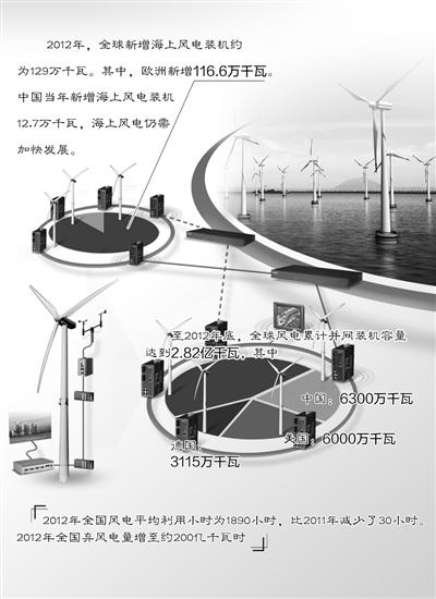 在看到風(fēng)電快速發(fā)展的同時(shí),還有組數(shù)據(jù)不容忽視。2012年全國(guó)風(fēng)電平均利用小時(shí)為1890小時(shí),比2011年的1920小時(shí)減少了30小時(shí)。2012年全國(guó)棄風(fēng)電量從2011年的120多億千瓦時(shí)增至約200億千瓦時(shí),棄風(fēng)電量占全年風(fēng)力發(fā)電量的1/5。