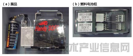 產(chǎn)業(yè)技術(shù)綜合研究所開發(fā)出了可搬運(yùn)的SOFC系統(tǒng)。能利用LPG氣瓶驅(qū)動(dòng)(a)。采用了圓筒型電池單元(b)。