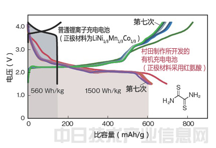 有機(jī)化合物與現(xiàn)行的材料相比可提高正極的比容量。村田制作所將紅氨酸定位為主要候補(bǔ),已確認(rèn)可將容量密度提高到650mAh/g左右。
