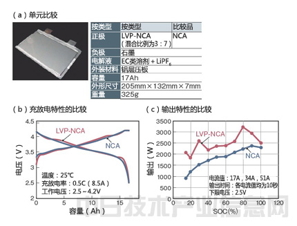 富士重工通過在NCA類正極材料中混合LVP,提高了輸入輸出特性。