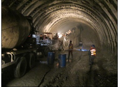 1#尾水主洞于2011年1月29日實(shí)施主洞洞挖施工以來(lái),采取了三項(xiàng)措施保證施工。第一精心組織,組建了一支業(yè)務(wù)水平高的專(zhuān)業(yè)技術(shù)指導(dǎo)小組,負(fù)責(zé)深入現(xiàn)場(chǎng),了解施工進(jìn)度,及時(shí)解決施工過(guò)程中出現(xiàn)的技術(shù)難題,根據(jù)現(xiàn)場(chǎng)施工情況變化,隨時(shí)調(diào)整施工方案;第二科學(xué)施工,采用先進(jìn)的TRT6000型地質(zhì)雷達(dá)系統(tǒng)進(jìn)行中長(zhǎng)距離的地質(zhì)預(yù)報(bào),指導(dǎo)洞室安全掘進(jìn);采用納米鋼纖維及納米仿鋼纖維噴射混凝土技術(shù)及時(shí)對(duì)塌方及滲漏水部位進(jìn)行了封閉,從而保證了洞室安全;采用短進(jìn)尺、弱爆破、預(yù)留核心土全斷面一次爆破和每開(kāi)挖10~20m及時(shí)進(jìn)行底板部位的混凝土置換工作方法,全面保證正常施工;第三人文關(guān)懷,制定了錨噴支護(hù)等獎(jiǎng)勵(lì)機(jī)制,并實(shí)行“八項(xiàng)承諾心系農(nóng)民工”舉措,在能力范圍內(nèi)為工程施工全方位創(chuàng)造條件,有效激發(fā)了施工隊(duì)伍的積極性,有利地促進(jìn)了工程的進(jìn)度。