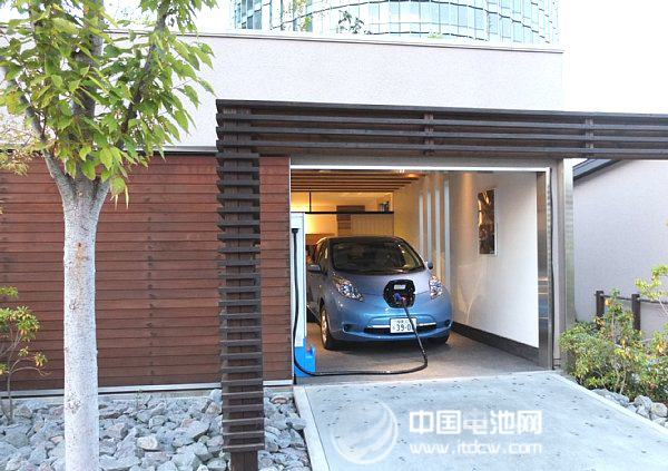 位于橫濱市港未來地區(qū)的“觀環(huán)居”,是由積水住宅建設(shè)的環(huán)保型住宅,是YSCP的示范地點(diǎn)。在此,日產(chǎn)汽車正在利用該公司生產(chǎn)的EV“聆風(fēng)”進(jìn)行V2H(Vehicle to Home)實(shí)證實(shí)驗(yàn)。通過快速充電端口、充放電PCS(Power Conditioning System),從分電盤向EV充電,或者由EV向住宅提供電力(照片1)。平時(shí)與系統(tǒng)電力協(xié)調(diào)實(shí)現(xiàn)節(jié)電,停電時(shí)與電力系統(tǒng)斷開用作緊急電源。