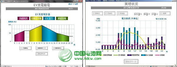 當(dāng)然,EV使用者也可以改變EV的使用計(jì)劃。充放電計(jì)劃也會(huì)根據(jù)改變后的使用計(jì)劃而自動(dòng)進(jìn)行改變。同時(shí)也提供了用于顯示使用者實(shí)際充放電和太陽能發(fā)電電力使用狀況的畫面,通過該畫面可以確認(rèn)系統(tǒng)電力的用電量減少程度(圖1右)。