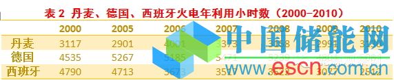 那么,風電發(fā)展與“窩電”之間是什么關(guān)系呢?風電享受優(yōu)先調(diào)度消納權(quán),只要風電能夠發(fā)電,電力調(diào)度部門就會優(yōu)先安排風電上網(wǎng),必然對常規(guī)電源發(fā)電造成擠壓,導(dǎo)致常規(guī)電源利用小時數(shù)降低。同樣的道理,當夏季西南水電大發(fā)的時候,火電機組利用小時數(shù)也會被水電代替。丹麥、德國和西班牙被公認為是風電發(fā)展最具代表性的歐洲國家,但是這三個國家火電利用小時數(shù)卻呈現(xiàn)不同特點:丹麥火電利用小時數(shù)維持在3000多一點的水平,2000年以來在低位維持穩(wěn)定;德國火電利用小時數(shù)相對來說還是比較高的,在5000小時左右,年度之間的起伏比較大;西班牙火電利用小時數(shù)則是呈現(xiàn)非常明顯的下降趨勢,2010年已經(jīng)不到3000小時(如表2所示)。