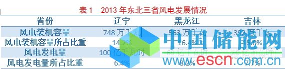 筆者認為,東北窩電固然有火電機組增長過快,電源外送通道容量不足的問題,但近幾年風電的“大干快上”也是重要因素。根據(jù)國網(wǎng)能源研究院新能源信息統(tǒng)計分析平臺數(shù)據(jù),截至2013年底東北電網(wǎng)風電裝機總量達到2080萬千瓦,其中蒙東、遼寧、黑龍江、吉林風電并網(wǎng)容量分別為748萬千瓦、563萬千瓦、392萬千瓦、377萬千瓦,遼寧、黑龍江、吉林風電裝機容量分別占全省總裝機容量的14.2%、16.4%、15.0%,風電發(fā)電量分別占總發(fā)電量的6.4%、8.2%、7.7%。2013年東北三省風電發(fā)展情況如表1所示。