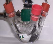 他們用銅代替一半的鐵,用所產生的化合物制成結晶納米粒子,再把這些粒子涂到布狀碳基質上。然后,他們把這種電極沉浸在硝酸鉀(potassium nitrate)電解質溶液中。