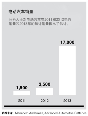 一家名為先進汽車電池(Advanced Automotive Batteries)的咨詢機構(gòu)的梅納海姆•阿德爾曼(Menahem Anderman)對2013年電動汽車電池的計劃產(chǎn)能和實際需求之間的差距進行了估計(數(shù)據(jù)見圖一)。即便使用這些電池的汽車數(shù)量在2012至2013年間出現(xiàn)大幅增長(數(shù)據(jù)見圖二),這一預(yù)計中的差距仍將出現(xiàn)。
