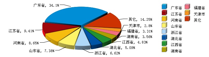 2012年8月,全國(guó)鋰離子電池制造行業(yè)企業(yè)數(shù)393.00家。其中,廣東省企業(yè)數(shù)占比34.1%;江蘇省企業(yè)數(shù)占比9.41%;河南省企業(yè)數(shù)占比8.65%……