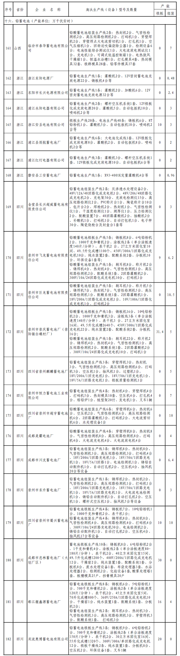 其中包括極板126.4萬(wàn)千伏安時(shí)、組裝94.94萬(wàn)千伏安時(shí)。涉及鉛蓄電池落后產(chǎn)能企業(yè)共計(jì)22家,浙江和四川居多,其中四川省獨(dú)攬14家,浙江企業(yè)7家,山西1家。