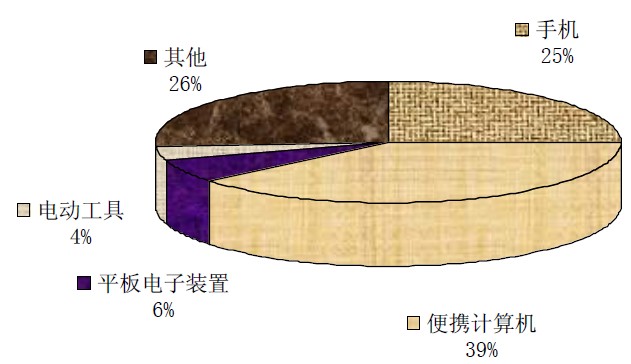 圖1:2011鋰離子電池應(yīng)用領(lǐng)域的市場(chǎng)結(jié)構(gòu)圖