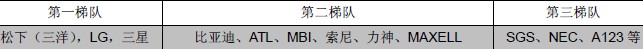 表1:全球各鋰離子電池生產(chǎn)企業(yè)在鋰電行業(yè)上梯隊(duì)劃分