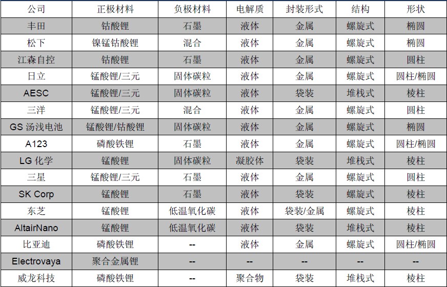 表4:國(guó)外主要電池廠商材料應(yīng)用概況