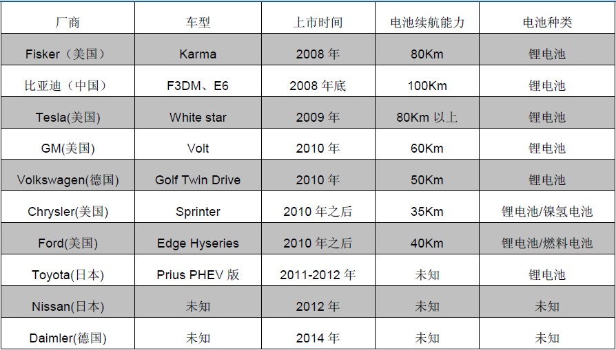 表5:規(guī)劃中的電動(dòng)汽車(chē)