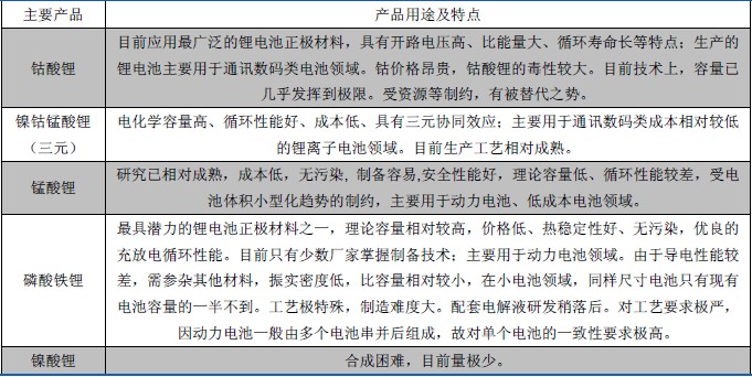 表9:正極材料的分類(lèi)及其運(yùn)用