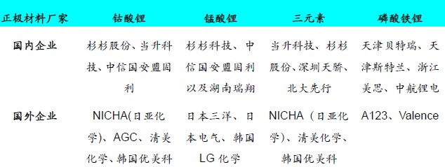 表11:國(guó)內(nèi)外主要正極材料廠商分類(lèi)