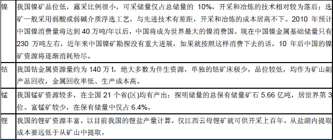 表12:我國(guó)正極材料所需金屬礦的儲(chǔ)量