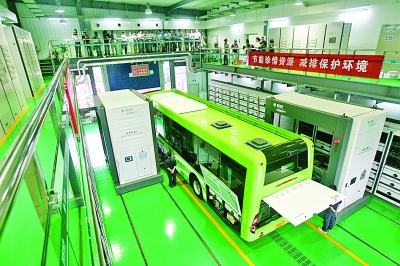 電動公交車正在換電池。劉瀏攝