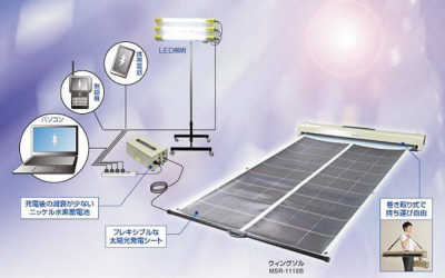 中國儲能網(wǎng)訊:據(jù)國外媒體報道,日本太陽工業(yè)近日推出了一款可卷起的便攜應(yīng)急用太陽能電池系統(tǒng),以應(yīng)付各種自然災(zāi)害帶來的電力缺乏。本產(chǎn)品由太陽能單元和電池單元所組成。太陽能單元的面板采用一張柔韌的非晶質(zhì)太陽能薄膜,公司宣稱其可以在很短的時間內(nèi)卷起帶走。本產(chǎn)品號稱完全綠色,工作時不會發(fā)出噪音。太陽工業(yè)表示,在天氣晴朗的情況下,要充滿電需要大約8個小時,可以支持一臺電腦工作2到3小時。