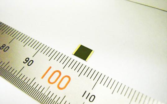 聚光光伏電池轉換效率創(chuàng)紀錄,達到43.5%,圖為一小塊電池(黑色),尺寸為1厘米。來源:夏普公司