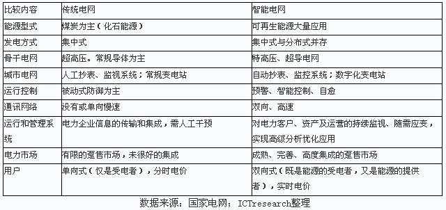 表1 智能電網(wǎng)與傳統(tǒng)電網(wǎng)的差異