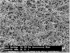 在一項太陽能電池應(yīng)用中,該銀基分形樹被涂在吸光聚合物上。當光子撞擊涂層的時候,會在聚合物中產(chǎn)生短期的電子和洞。帶正電荷的洞通過銀分支來收集,同時電子移動至對電極形成電勢差。