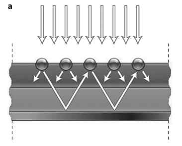 我所在的實(shí)驗(yàn)室正在進(jìn)行的研究包括,怎么采用自主裝的方式來快速、低價地合成較大尺寸的納米級金屬結(jié)構(gòu),以捕獲光能。經(jīng)過研究,目前有幾種結(jié)構(gòu)已經(jīng)得到了驗(yàn)證。如a所示,在表層嵌入納米顆粒,這樣光線就會廣泛地散射,而不是直接透過電池。所以光線會在電池中往復(fù)折返數(shù)次,提高了光吸收的比例。在圖b中,在中間界面嵌入納米顆粒,光線入射到這層納米顆粒中間時,就會被它們束縛住,不再會穿過電池,所以光線就被困在了電池內(nèi)部,大大提高了吸收效率。另外圖c中:在底層制作出納米尺度的金屬光柵結(jié)構(gòu),這樣入射的光線將會被金屬光柵結(jié)構(gòu)束縛在表面,光線只能沿著光柵方向傳播而不是直接從背面出射,這樣增加了光線在電池內(nèi)部的傳播距離,所以提高了吸收和轉(zhuǎn)化為電能的效率。