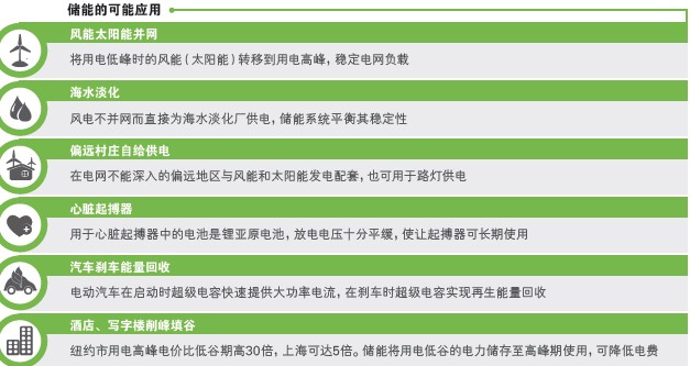 但上述兩個(gè)行業(yè)給儲能留下了伏筆。在沒有儲能的情況下,風(fēng)電場旁總是要修建一些火電廠,以備沒有風(fēng)時(shí)替代風(fēng)機(jī)發(fā)電——不然脆弱的電網(wǎng)將因電壓劇烈變化而崩潰。這聽上去像個(gè)笑話,但卻是事實(shí)。而中國政府確定在未來10年將可再生能源占總體能源比例由不到5%提高至15%,大規(guī)模儲能(可以把它想象成巨型電池,把多余的電力存儲起來,到無風(fēng)可用時(shí)再釋放出來),是解決這一問題的不二之選。