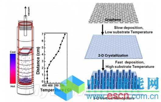 現(xiàn)在,該研究小組發(fā)明了一種新的簡(jiǎn)單、靈活的技術(shù),可以生產(chǎn)這種“納米草”。他們將半導(dǎo)體原材料和石墨烯底料放在真空的溫度梯度爐中,開始的低溫能夠先形成一個(gè)超薄薄膜,然后隨著溫度的提升,半導(dǎo)體化合物便向硬幣一樣一層層的推疊,一個(gè)“納米草”便形成了。