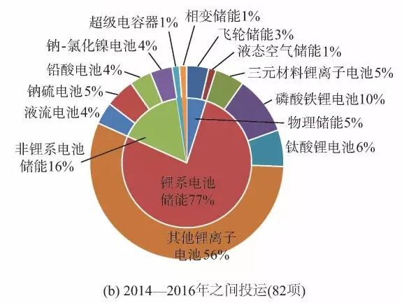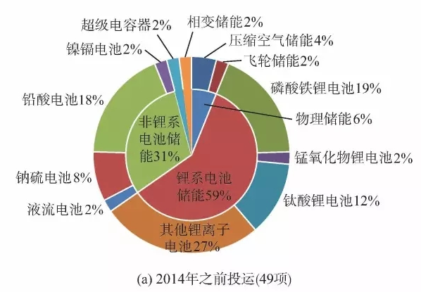 鋰系電池為MW級儲能調(diào)頻應(yīng)用主流類型,其中鈦酸鋰電池高倍率特性和較好的循環(huán)壽命,應(yīng)用前景廣闊。鈉硫、鉛酸電池在2014年之前具有前期優(yōu)勢,之后鉛炭電池涉入。儲能技術(shù)類型呈多元趨勢,未來重力儲能、氫儲能等將應(yīng)用于調(diào)頻領(lǐng)域。