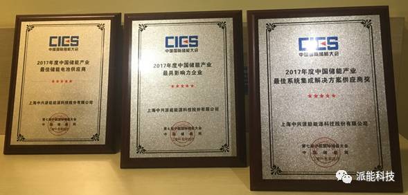 此次大會上,上海中興派能能源科技股份有限公司(以下簡稱“中興派能”)榮獲2017年度中國儲能產(chǎn)業(yè)最具影響力系列獎項之“儲能產(chǎn)業(yè)最佳系統(tǒng)集成解決方案提供商”、“最佳儲能電池供應商”以及“儲能行業(yè)最具影響力企業(yè)”三項大獎。