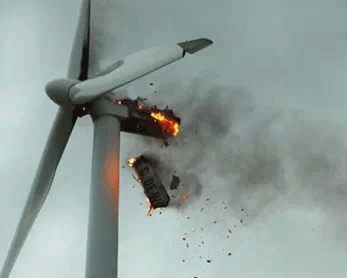 當(dāng)主軸剎車(chē)器在葉輪高速旋轉(zhuǎn)時(shí)進(jìn)行制動(dòng),要使機(jī)組停下來(lái),一方面,葉片有巨大的慣性,主軸剎車(chē)制動(dòng)減速會(huì)產(chǎn)生很大的翻轉(zhuǎn)扭矩,有使塔筒沿葉輪旋轉(zhuǎn)方向折斷的趨勢(shì),當(dāng)翻轉(zhuǎn)扭矩足夠大時(shí),就會(huì)從塔筒的應(yīng)力集中點(diǎn)折斷;另一方面,要使葉輪停止轉(zhuǎn)動(dòng),葉輪的動(dòng)能、勢(shì)能和葉輪繼續(xù)吸收的風(fēng)能都消耗在主軸剎車(chē)器和剎車(chē)盤(pán)上,會(huì)釋放巨大的熱量,同時(shí)可能產(chǎn)生劇烈的火花。因此,主軸剎車(chē)器上設(shè)計(jì)有主軸剎車(chē)器罩殼,避免火花飛濺造成機(jī)艙起火。但是,當(dāng)葉輪的能量足夠大時(shí),剎車(chē)器產(chǎn)生的劇烈火花還是會(huì)燒穿剎車(chē)器罩殼,或者引燃周?chē)目扇嘉镏饘?dǎo)致機(jī)艙起火。