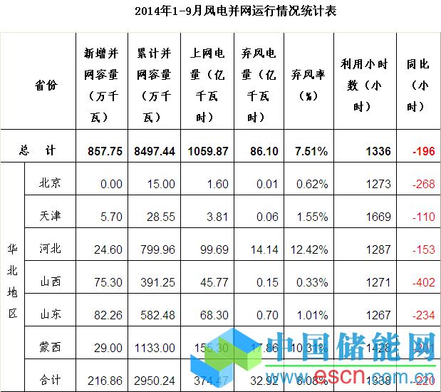 中國(guó)儲(chǔ)能網(wǎng)訊:1-9月,全國(guó)風(fēng)電新增并網(wǎng)容量858萬(wàn)千瓦,到9月底,全國(guó)累計(jì)并網(wǎng)容量8497萬(wàn)千瓦,同比增長(zhǎng)22%;1-9月,全國(guó)風(fēng)電上網(wǎng)電量1060億千瓦時(shí),同比增長(zhǎng)7.6%。受國(guó)家一系列宏觀調(diào)控措施影響,1-9月全國(guó)風(fēng)電棄風(fēng)限電形勢(shì)繼續(xù)好轉(zhuǎn),風(fēng)電棄風(fēng)電量86億千瓦時(shí),同比下降28.3億千瓦時(shí);平均棄風(fēng)率7.5%,同比下降3.36個(gè)百分點(diǎn)。受今年來(lái)風(fēng)情況較小影響,1-9月全國(guó)風(fēng)電平均利用小時(shí)數(shù)1336小時(shí),同比下降196小時(shí)。