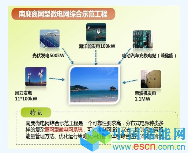 南麂島微網(wǎng)示范工程總投資1.5億元,主要在島上建設(shè)1000千瓦的風(fēng)力發(fā)電系統(tǒng)、545千瓦的光伏發(fā)電系統(tǒng)、30千瓦的海流能發(fā)電系統(tǒng)以及儲(chǔ)能系統(tǒng),保留柴油發(fā)電系統(tǒng),結(jié)合電動(dòng)汽車充換電站、智能電表、用戶交互等先進(jìn)的智能電網(wǎng)技術(shù),滿足建設(shè)生態(tài)海島、環(huán)保海島的需要。