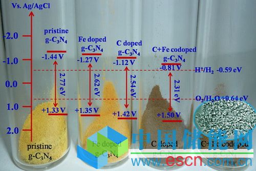 研究人員通過簡(jiǎn)單的熱轉(zhuǎn)換方法第一次制備出金屬、非金屬共摻雜的多孔氮化碳可見光催化劑。結(jié)果表明通過這種簡(jiǎn)單的共摻雜方法可以有效地調(diào)節(jié)氮化碳的能帶結(jié)構(gòu):更窄的帶隙和更正的價(jià)帶。這一研究結(jié)果一方面有效地?cái)U(kuò)展了光催化的光譜吸收范圍,從而能夠吸收更多的光子;另一方面進(jìn)一步提高了光催化劑的氧化能力,從而達(dá)到有效降解有機(jī)污染物的目的。